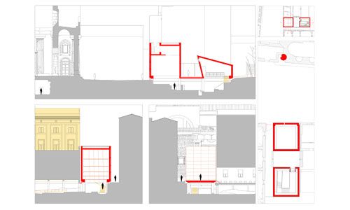 Il progetto funge principalmente da collegamento tra il “nuovo” e “l’ antico”, tra l’ area immensa di piazza Duomo ( la forma a mandorla ne da adito) e l’ area sepolta contenente parte delle testimonianza greca dell’ isola di Ortigia. Attraverso una serie di corpi-scatole che portano ad un percorso nei sotterranei è possibile ammirare ciò che si è conservato del tempio ionico, della cripta della chiesa di San Sebastianello (demolita negli anni 60), e infine di alcune abitazioni sicule della tarda età del bronzo.