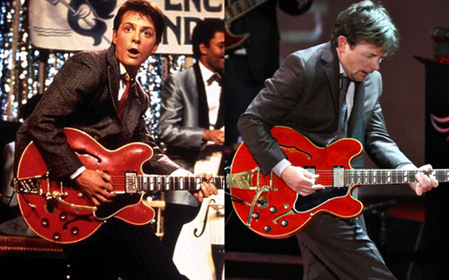 Quando nel 1958 Chuck Berry compose “Johnny B. Goode” non poteva immaginare che, oltre a cambiare il volto e l’orecchio della musica internazionale, avrebbe dato un vero e proprio inno alla lotta al morbo di Parkinson! Per un tale onore deve ringraziare uno degli attori più amati degli anni 80 e 90: Michael J. Fox. L’attore, di origine canadese, divenuto un idolo cinematografico per lo strepitoso personaggio della saga “Ritorno al futuro” (regia Robert Zemeckis, produzione Steven Spieldberg), Marty McFly, ha calcato per la prima volta le scene di un set, nell’ormai lontano 1980, nel film Follia di mezzanotte ed ha raccolto i primi lunghi applausi per il debutto televisivo nella sitcom Casa Keaton, come protagonista indiscusso della serie tv. Negli anni il suo talento viene confermato con i grandi successi Voglia di vincere e soprattutto Il segreto del mio successo e Vittime di guerra che ha come coprotagonista il grande Sean Penn. Nel 1991 gli viene diagnostica quella che meno sovente viene chiamata malattia idiopatica di Parkinson in forma grave. Egli continua il suo lavoro di attore con la stessa passione e caparbietà di un tempo e solo nel 1998 decide di rivelare al pubblico la verità sulla sua debilitante malattia che da li a pochi anni lo avrebbe costretto a lasciare le sue amate scene se non per apparire in qualche simpatico cammeo dove, spesso e volentieri, interpreta se stesso. Gli ultimi premi tributatigli per le sue performance televisive sono i 3 Golden Globe ed un Emmy Awards per l’interpretazione del protagonista della fortunatissima serie tv Spin City: Mike Flaherty. Gli anni della malattia non scoraggiano Michael che crea la sua Michael J. Fox Foundation for Parkinson’s Reserch,impegnata nella raccolta fondi a favore della ricerca sulle cellule staminali. Essa rappresenta la più grande fondazione no profit, a livello mondiale, per la ricerca dedicata ad una sola malattia e questo novembre, in occasione dell’annuale serata di raccolta fondi, Michael ha rimesso, per una sera soltanto, gli abiti di Marty McFly, abbracciando una della chitarre più famose al mondo: la Gibson 1963 ES-345TD, usata anche dal mitico ed inimitabile Chuck Berry che, secondo la finzione filmica, avrebbe carpito il ritmo rock della sua Johnny B. Goode ascoltando al telefono l’esibizione di un ragazzino sconosciuto sul palco di una scuola americana degli anni 50; è il caso di dire che doveva sembrargli un sound proveniente dal futuro! Il neo 50enne Fox ha tenuto perfettamente il ritmo del brano, sul palco del Waldfor-Astoria di New York, avendo imparato, negli anni, a suonare egregiamente la chitarra elettrica. Alla serata hanno preso parte tantissimi amici vip dell’attore naturalizzato statunitense che ha intitolato simpaticamente l’avvenimento: “A Funny Thingh Happened on the Way to Cure Parkinson’s”.