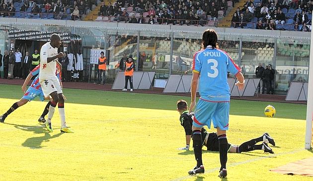La segnatura che decide la battaglia del Massimino la realizza, dopo un’ora di gioco, l’attaccante colombiano Ibarbo classe 90, già da tempo accostato alla figura dell’intramontabile Faustino Asprilla. In realtà le sue falcate ricordano più quelle di Suazo, tanto caro alla tifoseria sarda, adesso cliente abituale dell’infermeria di Torre del Grifo.