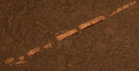Infine, un altro dato interessante fornito da Opportunity, è che venature simili appaiono in una zona dove le rocce sedimentarie delle pianure, ricche di solfato, incontravano le antiche rocce vulcaniche. “Si vorrebbe capire perchè le venature si trovano nel cratere e non nelle pianure”, ha dichiarato il vice ricercatore principale della Missione, Ray Arvidson della Washington University di St. Louis, che ipotizza che potrebbero essere di orgine sotterranea .