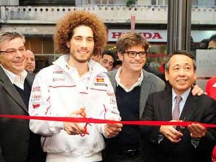 (Inaugurazione del punto vendita Honda di cui l’azienda era divenuta concessionaria esclusiva, con grande festa e taglio del nastro con il pilota Marco Simoncelli e uno dei più alti dirigenti giapponesi della Honda.)