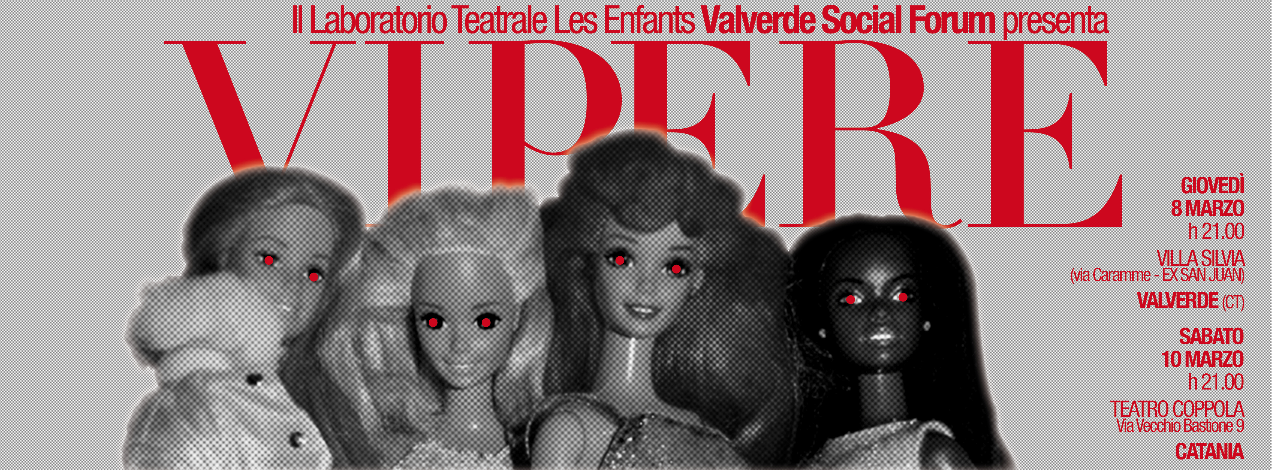 “Les Enfants” , il laboratorio teatrale sperimentale con sede presso il “Valverde Social Forum” in Corso Vittorio Emanuele n° 84, nasce nel 2010 con l’obiettivo di stimolare la creatività e la libertà di ciascuno inserito nella prospettiva del gruppo, abolendo la gerarchia tipica dell’ambiente teatrale. Uno dei cardini di questo progetto è infatti l’autodisciplinarsi, il faticare col sorriso, il lavorare armoniosamente per raggiungere il comune obiettivo di partecipare ad un’esperienza meravigliosa ed unica, quella, per l’appunto, del teatro, con le sue innumerevoli sfumature. I ragazzi del laboratorio teatrale debutteranno giorno 8 marzo presso Villa Silvia sita in Valverde e giorno 10 presso il Teatro Coppola ( Ct ) con lo spettacolo: “Vipere, uno spettacolo orribile.”