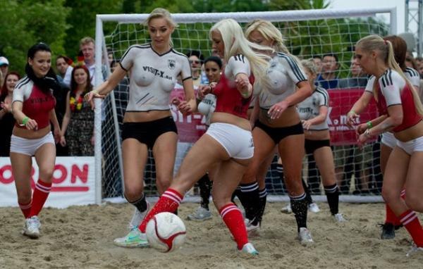 In occasione della partita tra Germania e Danimarca, conclusasi poi 2 a 1 per i tedeschi, contemporaneamente a Berlino si è svolta la quarta edizione del singolare torneo di beach soccer femminile, che ha visto confrontare il meglio del mondo hard danese e tedesco, che si è dato battaglia sul terreno di gioco, per una partita “caldissima” e non solo, per la gioia degli sportivi ma, soprattutto, degli appassionati della bellezza femminile.