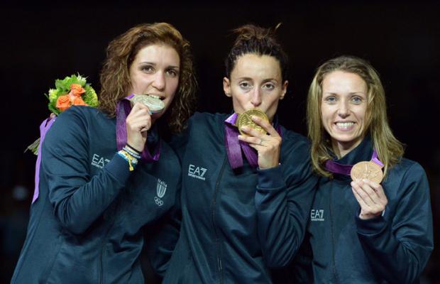 LONDRA. L’Italia della scherma fa sognare ancora una volta: la prima giornata di gare delle Olimpiadi di Londra si chiude per l’Italia con l’incredibile tripletta nella specialità del fioretto femminile. È il primo podio olimpionico del fioretto individuale donne tutto in azzurro.