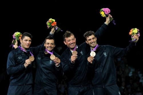 Aldo Montano, Diego Occhiuzzi e Luigi Samele, preferito dal ct Giovanni Sirovich a Luigi Tarantino per la sfida che assegnava la medaglia, si sono imposti per 45-40 sulla Russia, al termine di una gara estremamente combattuta e che ha vissuto molti momenti carichi di adrenalina, tensione e passione.