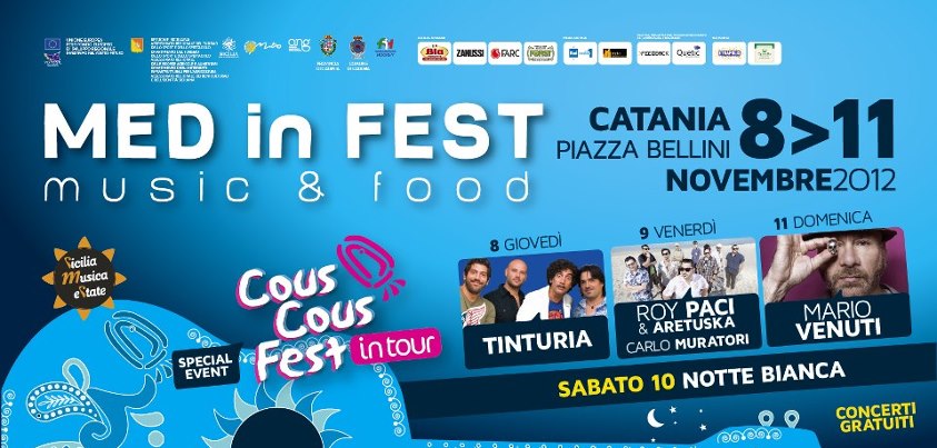 Da giovedì 8 a domenica 11 Novembre Catania diventa il punto di incontro per le diverse realtà del Mediterraneo che travolgeranno il centro etneo in un vortice di musica, sapori e culture ininterrottamente per quattro giorni. L’evento, Med In Fest, è il festival dedicato alla valorizzazione ed alla promozione della musica e dei sapori mediterranei, organizzato dall’Associazione Culturale Quetic (associazione senza scopo di lucro che si prefigge la promozione del territorio, del turismo e della cultura). Si svolgerà in Piazza Bellini, Via Teatro Massimo e – come prefissato dagli scopi volti ad aumentare l’attrattiva territoriale regionale dalla Regione Siciliana Assessorato del Turismo- sarà un’attività dal grande richiamo turistico e locale.