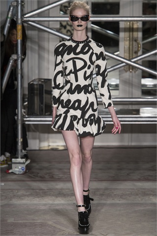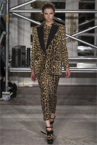 Moschino Cheap & Chic rilancia con colori scuri e decisi, opponendo al trend del colore pastello l’animalier molto visto e inflazionato negli ultimi anni. Un tocco di non originalità anche nella presenza degli “abiti scrittura” colpo che viene però attutito dagli abiti in fuxia con linee rette e decise.
