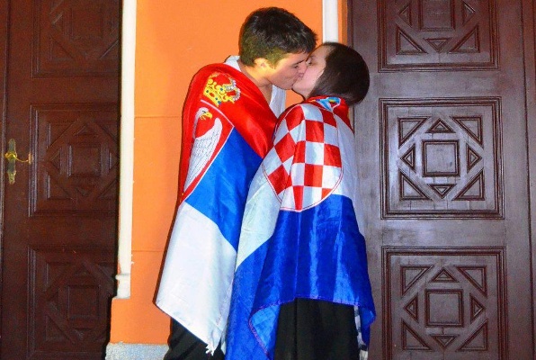 Ci sono gesti semplici che superano le parole e dicono più di quanto tante righe possano fare. Come un bacio tra un lui e una lei, entrambi giovani, entrambi innamorati. Un gesto come tanti, ma che può diventare un simbolo. Lo diventa se i due giovani che si baciano sono avvolti nelle bandiere dei loro Paesi, Serbia e Croazia. E se si tiene a mente che la storia contemporanea rende questo bacio, più che romantico, soprattutto simbolico.