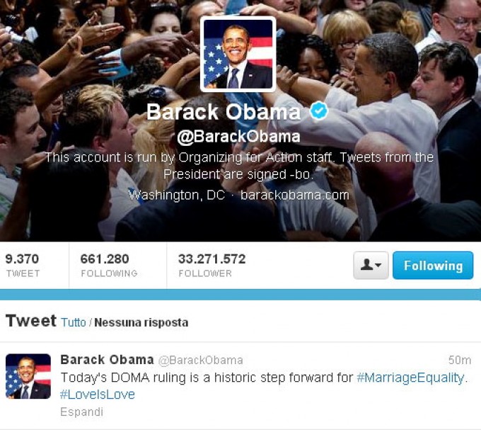 «Quanto tutti gli americani vengano trattati come eguali, non importa chi sono o chi amino, allora tutti noi siamo più liberi», commenta Barack Obama. «Quella legge era discriminatoria – continua il Presidente – trattava le coppie gay e lesbiche come cittadini diversi di serie b. La sentenza rappresenta un vittoria per le coppie che a lungo hanno lottato per un trattamento paritario di legge, per i bambini i cui genitori ora sono riconosciuti come legittimi, per le famiglie che avranno da oggi in poi il rispetto e la protezione che meritano».