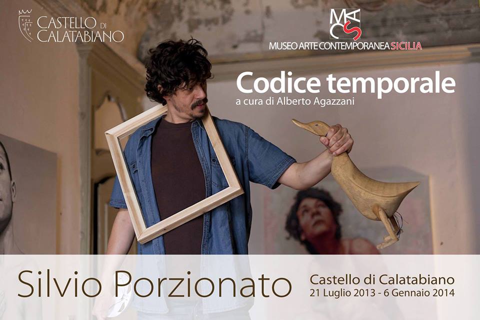 Silvio Porzionato (autore della mostra “Codice Temporale”) – “Durante il mio primo soggiorno in Sicilia, dove mi sono recato per visitare il museo MacS, ancora in costruzione, sono stato invitato dall’Ing. di Prima e dal Direttore del MacS, la Sig.ra Giuseppina Napoli, al Castello di Calatabiano. Di fronte allo spettacolo del Castello, ho avvertito il grande fascino di quel luogo depositario di una storia millenaria e testimone delle civiltà del Mediterraneo che lo hanno abitato. Allora ho cominciato a pensare al tempo ed a come potevo io, fuori dalle logiche scientifiche, filosofiche, storiche, apportare un mio personale contributo con gli strumenti che frequento e che mi sono propri. Il risultato di questo pensiero è “Codice Temporale”, una mostra che è un’istallazione pittorica creata per il Castello di Calatabiano e sul Castello di Calatabiano, per raccontare lo scorrere del tempo attraverso i volti dei miei personaggi. Il mio desiderio è quello di riuscire così a fondere il concetto del tempo che ho elaborato con quello che è espresso dal Castello: questo suggestivo Castello lo racconta attraverso le sue pietre, io attraverso le mie opere”.