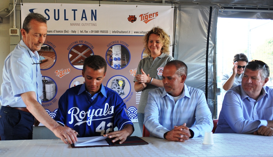 Un applauso lunghissimo, interminabile, che, in pochi secondi, si tramuta in una standing ovation, una di quelle che tutti i presenti ricorderanno per molto tempo. Alcune persone sono visibilmente commosse,altre cercano di trattenere una qualche lacrima che inevitabilmente, ma anche giustamente scende dagli occhi. Il momento è storico: Marten Gasparini ha appena firmato un contratto da 1.3 milioni di dollaricon la franchigia dei Kansas City Royals. L’interbase azzurro, classe 1997, ha appena battuto il record di firma nel mercato dei prospetti europei.