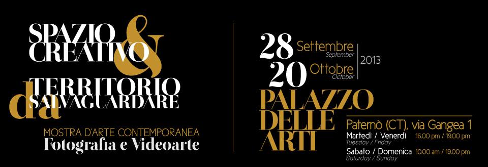 Ecco la nuova immagine della mostra/concorso “Spazio creativo e territorio da salvaguardare”. L’inaugurazione è prevista il 28 Settembre presso il Palazzo delle Arti, a Paternò alle ore 18:30. La giuria artistica, ( composta da Vittorio Graziano, Direttore Artistico del Medphotofest; Alessandro Gagliardo, di Malastrada film; Daniela Aquilia, Curatrice della mostra; Rosario Di Benedetto, Ideatore del progetto; Giuseppina Radice, Critica e Curatrice della mostra) ha selezionato piu’ di cento fotografi e videartisti provenienti da tutto il mondo. La mostra inoltre sarà arricchita dalla presenza di Workshop di: teatro, fotografia, storia dell’arte contemporanea, benessere ed incontri sulla video arte. A breve tutte le info consultabili anche sul sitowww.associazioneideattiva.it