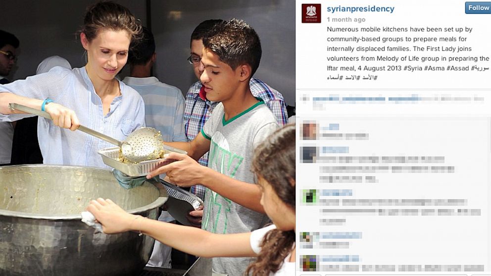 Si dice che un’immagine valga più di mille parole, ed è di sicuro questo che spera di ottenere Assad da questo suo ultimo stratagemma: passare per buon samaritano e mettere a tacere le ultime terribili notizie che giungono dal fronte siriano. Le immagini pubblicate, infatti, mostrano un Paese in pace, governato da una famiglia di benefattori pronti a tutto pur di aiutare il prossimo. Protagonista indiscussa delle immagini è la first lady Asma al Assad, moglie del presidente siriano Bashar al Assad, ritratta nell’atto di accarezzare il viso di un bambino, o mentre abbraccia una donna che la guarda ammirata, o ancora intenta a servire alla mensa comune.