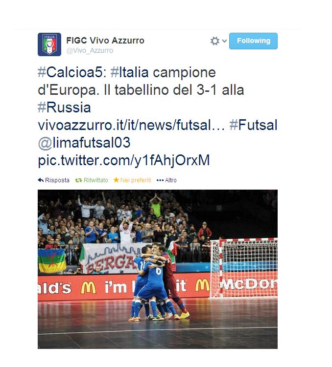 Staale Sandbech “Snowboarder Norvegese”: nulla da invidiare alle creste di Balotelli, El Shaarawy e Hamsik.Zoeggeler nella leggenda: è il primo atleta nella storia a conquistare sei medaglie in sei edizioni olimpiche consecutive.La Nazionale di calcio a 5 dell’Italia conquista il suo secondo Campionato Europeo battendo la Russia per 3-1 nella finale di Anversa.Questo è il calcio che vorremmo vedere tutti!La Dinamo Sassari riesce contro ogni pronostico a vincere la sua prima Coppa Italia, battendo squadre come Armani Milano e Montepaschi Siena, entrambe favorite per la vittoria finale.Tutto il mondo è paese… Ecco come viene preso dai tifosi il trasferimento di Lewandowski dal Borussia Dortmund al Bayern Monaco