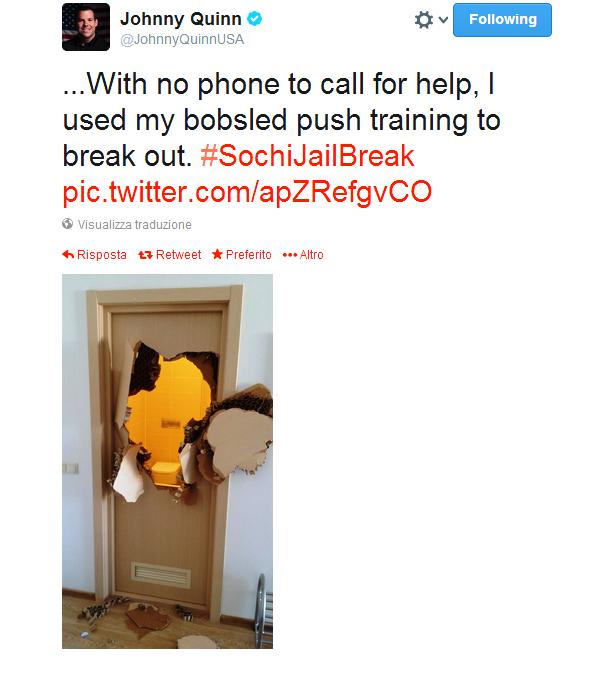 Piccola disavventura di Johnny Quinn “discesista di bob della nazionale Usa” rimasto chiuso in bagno: ecco come ha trattato la porta!