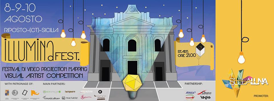 Si svolgerà dal 8 al 10 agosto in Piazza San Pietro a Riposto, la prima edizione del festival delle arti digitali dal titolo “ILLUMINAfest” organizzato dal collettivo SullaLuna, in collaborazione con l’Amministrazione Comunale di Riposto, con il patrocinio della Struttura Didattica Speciale Architettura dell’Università degli Studi di Catania e dell’Accademia di Belle Arti di Catania.