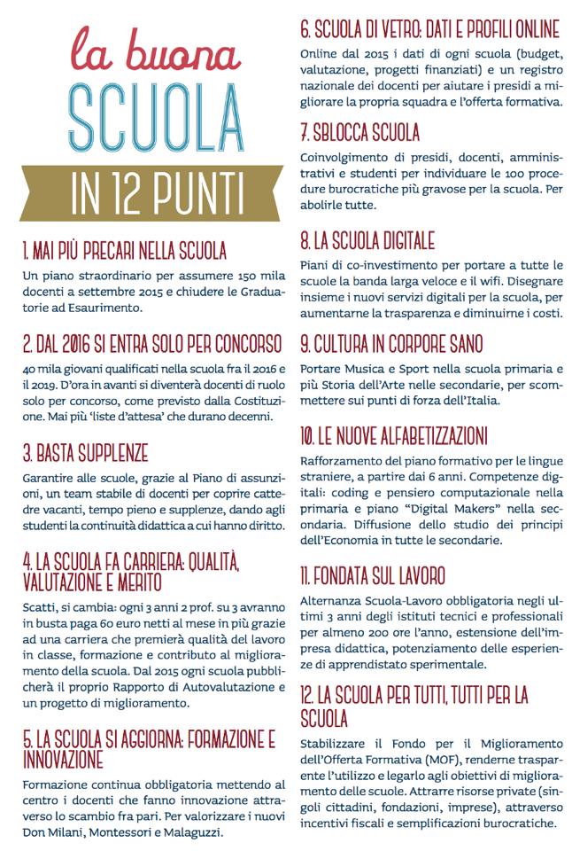 In una società dove il proliferare del precariato è uno dei mali assoluti questa riforma propone l’assunzione di 148 mila professori appartenenti alle graduatorie ad esaurimento nel corso del prossimo biennio e l’assunzione dell’impegno da parte del governo bandiera nella primavera dell’anno prossimo un concorso per 40 mila posti per coprire il triennio che spazierà dal 2016 al 2019.
