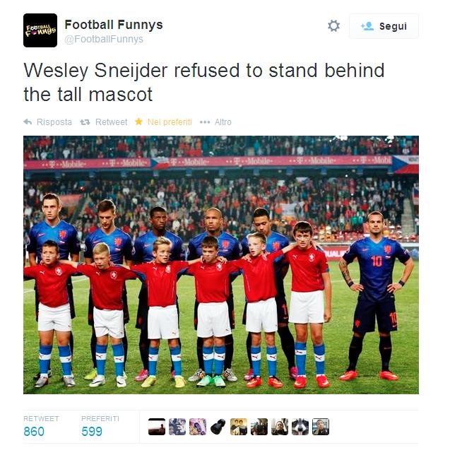 Durante l’inno nazionale di Repubblica Ceca Olanda, Wesley Sneijder si sposta dal bambino che gli è stato assegnato, perché è alto bene o male quanto lui!