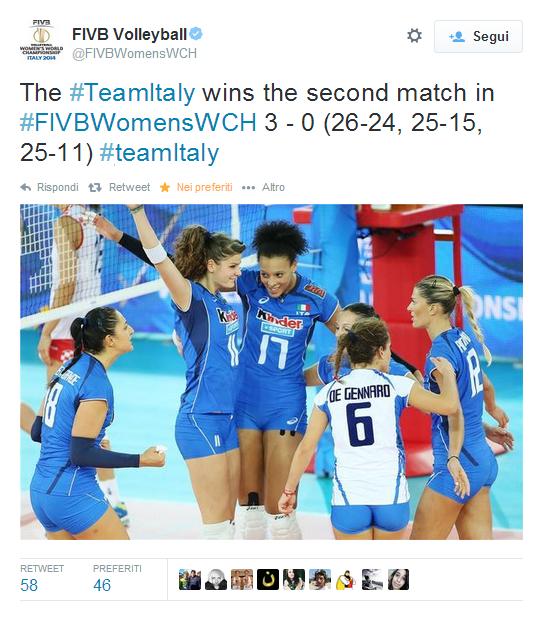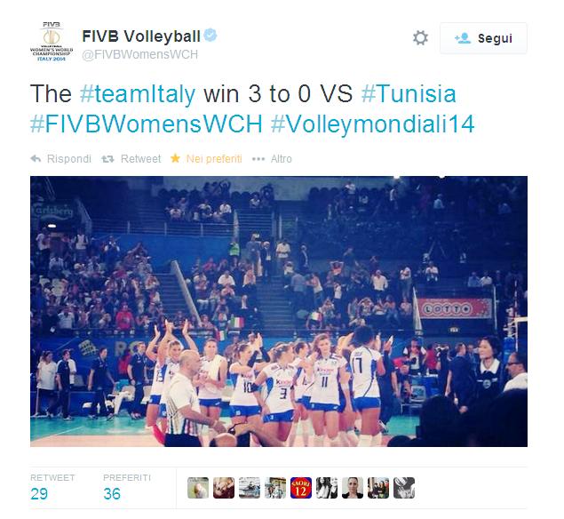 Ottimo esordio ai Mondiali di volley per la Nazionale Italiana Femminile, al PalaLottomatica di Roma batte la Tunisia con un netto 3-0 (25-11 25-13 25-8).