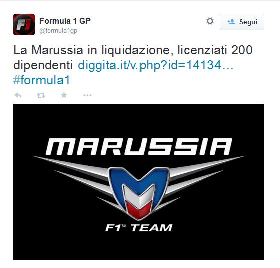 Per problemi finanziari e non trovando nessuna soluzione, la scuderia Marussia, team britannico, ritira le vetture, licenziando i 200 dipendenti. Nonostante mancassero ancora due GP “San Paolo e Abu Dhabi”.