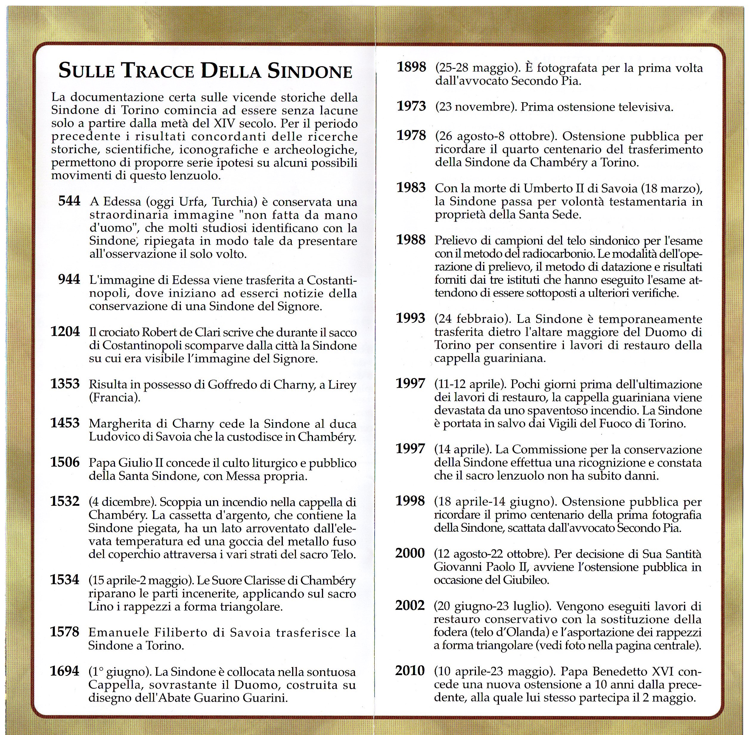 Per maggiori informazioni, consigliamo di consultare il sito in costante aggiornamento sindone.org