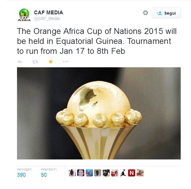 sarà la Guinea Equatoriale ad ospitare la Coppa d’Africa del 2015, dopo il ritiro del Marocco per per i timori legati dall’epidemia del virus Ebola.
