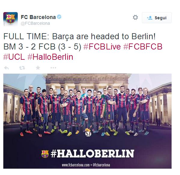 Nonostante la sconfitta nella gara di ritorno contro i bavaresi per 3-2 il Barcellona volerà lo stesso a Berlino, forte della vittoria dell’andata per 3-0. Per la conquista della coppa più prestigiosa del vecchio continente, dovrà vedersela con i campioni d’Italia.