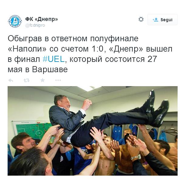 Vincendo rispettivamente contro Fiorentina e Napoli, il Siviglia e Dnipro si aggiudicano la finale di Europa League 2015, si sfideranno il prossimo 27 maggio a Varsavia. Il Siviglia campione in carica, oltre ad averla vinta anche nel 2006 e 2007 si ritroverà davanti il Dnipro “attualmente terzo nel massimo campionato ucraino”, che disputerà la sua prima finale europea.