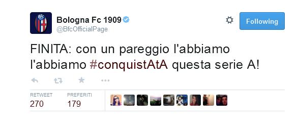 Grazie al pareggio contro il Pescara per 1-1 reti di Sansone e Pasquato, nella finale di ritorno play off, permettono al Bologna di conquistare la massima serie.