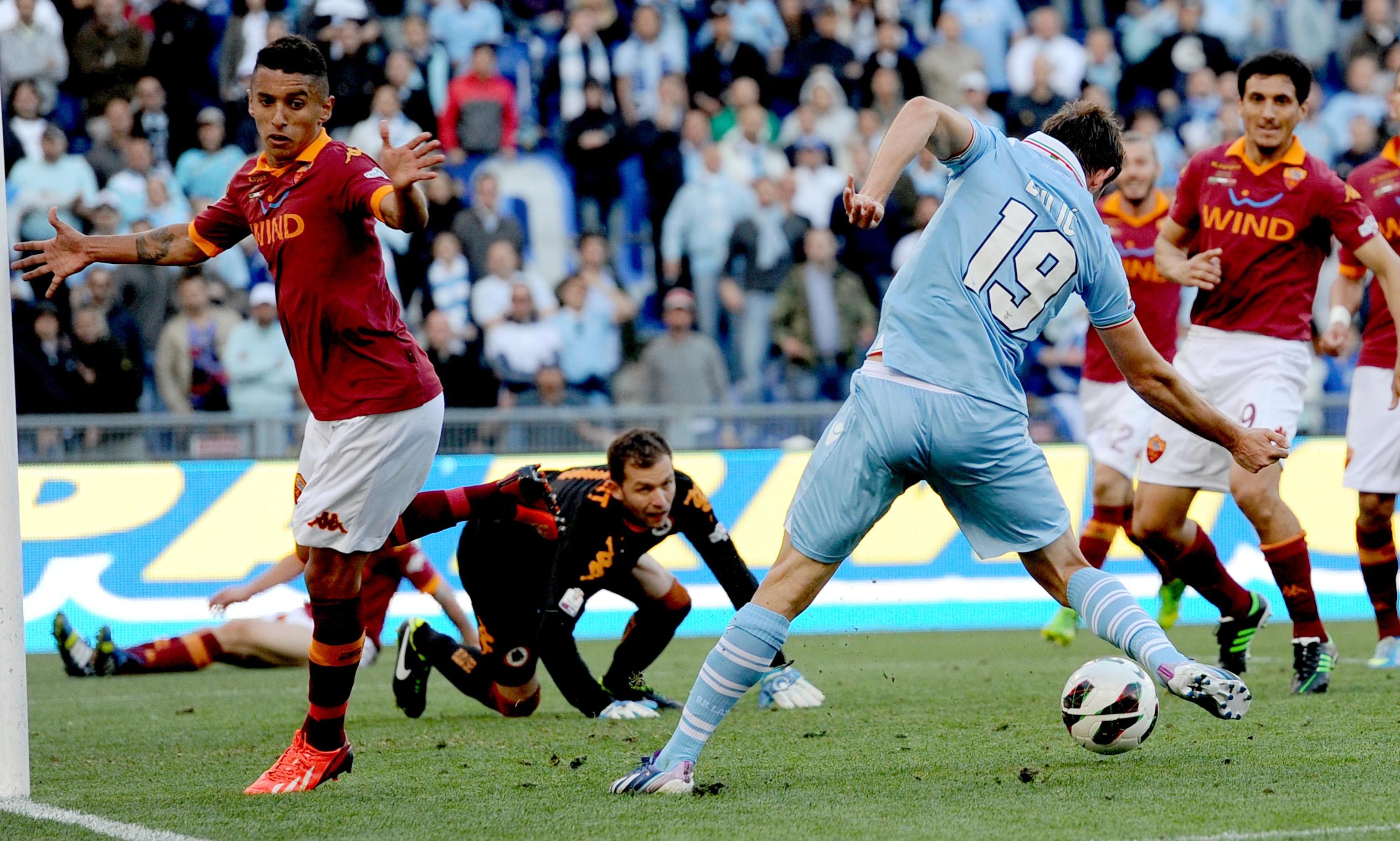 E’ certamente il derby più sentito dello stivale, coinvolge la più popolosa città d’Italia, e la paralizza nel giorno del match. Ma purtroppo Roma-Lazio è spesso anche luogo di fatti che col calcio non centrano nulla e rischiano di rovinare questa affascinante sfida. La forte rivalità tra le due formazioni capitoline nasce quando, nel 1927 diverse società romane si unirono e formarono l’A.S. Roma, fusione alla quale però non fece parte per scelta propria, la Lazio, nata già 27 anni prima; proprio in merito alla fondazione della S.S. Lazio, avvenuta nel 1900, i biancocelesti si definiscono “La prima squadra della capitale.” Così il primo derby tra Roma e Lazio avvenne solo nel 1929, finito con la vittoria della Roma per 1-0. Le diversità tra i due club sono molteplici: i colori sociali, passando ai loro simboli ed ai luoghi che vogliono rappresentare. Palese che la Lazio rappresenti tutta la regione omonima, a differenza della Roma. I simboli hanno origini molto antiche, da un lato la lupa che secondo la leggenda allattò Romolo e Remo, fondatori di Roma nel 753 a.c., dall’altro l’aquila, simbolo dell’Impero romano tra lo il primo e il quinto secolo d.c. Nei tantissimi incontri tra Lazio e Roma, solo una volta si giocò per l’assegnazione di un trofeo…Storia recente, 26 maggio 2013, Finale di Coppa Italia 2012/13, una stagione non positiva in Campionato per le due squadre, fuori dalle competizioni europee; la finale valeva una stagione intera e la supremazia capitolina. La partita sin dall’inizio si mostrò frizzante, con un occasione per parte nei primi 8 minuti di gioco, Lulic e Klose impegnano Lobont che con un doppio intervento salva la sua porta, replica Totti, con Marchetti che non si fa superare. Durante la prima frazione è la Roma a tenere maggiormente il pallino del gioco senza però creare particolari difficoltà alla difesa avversaria. Al 35′ è ancora il tedesco Klose a far scaldare i guanti di Lobont. Si va agli spogliatoi col risultato fermo sullo 0-0 ed un equilibrio generale. All’inizio del secondo tempo è la Roma a rendersi ancora particolarmente pericolosa, con conclusioni che però sono poco precise o comunque non pericolose, dall’altro lato la Lazio prova sull’asse Mauri-Candreva-Lulic a creare delle occasioni da rete; rete che arriva dopo diversi tentativi al 71′, un cross basso di Candreva viene respinto da Lobont, arriva Lulic che sigla il gol che poi valse la Coppa, facendo esplodere la curva biancoceleste. Solo due minuti più tardi arriva l’occasione più nitida per la Roma, punizione da circa 30 metri battuta da Totti, che trova Mattia Destro in aria di rigore…L’attaccante sfiora il pallone che tocca la traversa e poi finisce tra le mani di Marchetti. Durante i 4 minuti di recupero la Lazio gestisce bene il pallone e sfiora il raddoppio col capitano Mauri. Al triplice fischio di Orsato è grande festa per la Lazio, e tanta delusione per la Roma giallorossa che non ha digerito facilmente la pesante sconfitta, motivo di sconforto sportivo e dei vari “sfottò” del caso.