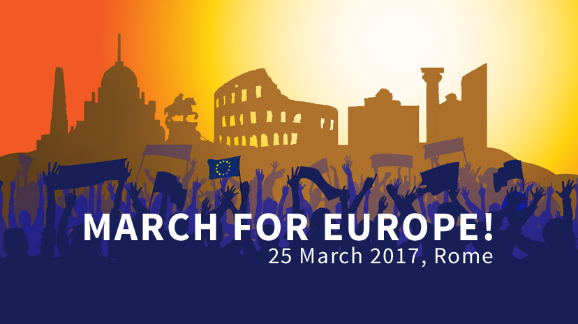 Il 25 marzo 2017 migliaia di cittadini europei da tutto il continente sono attesi a Roma per manifestare il proprio sostegno all’unità politica europea contro chi vuole dividere e distruggere l’Europa. La “Marcia per l’Europa“ chiede ai Capi di Stato e di Governo di rilanciare e completare l’unità politica europea, verso un’Europa più forte, più unita e più democratica. Nello stesso giorno, i Presidenti e i Primi Ministri dei Paesi UE si incontreranno nella capitale italiana per celebrare il 60° anniversario della firma del Trattato di Roma. Dopo 60 anni, è giunto il momento di portare fino in fondo il progetto di unità politica dell’Europa.