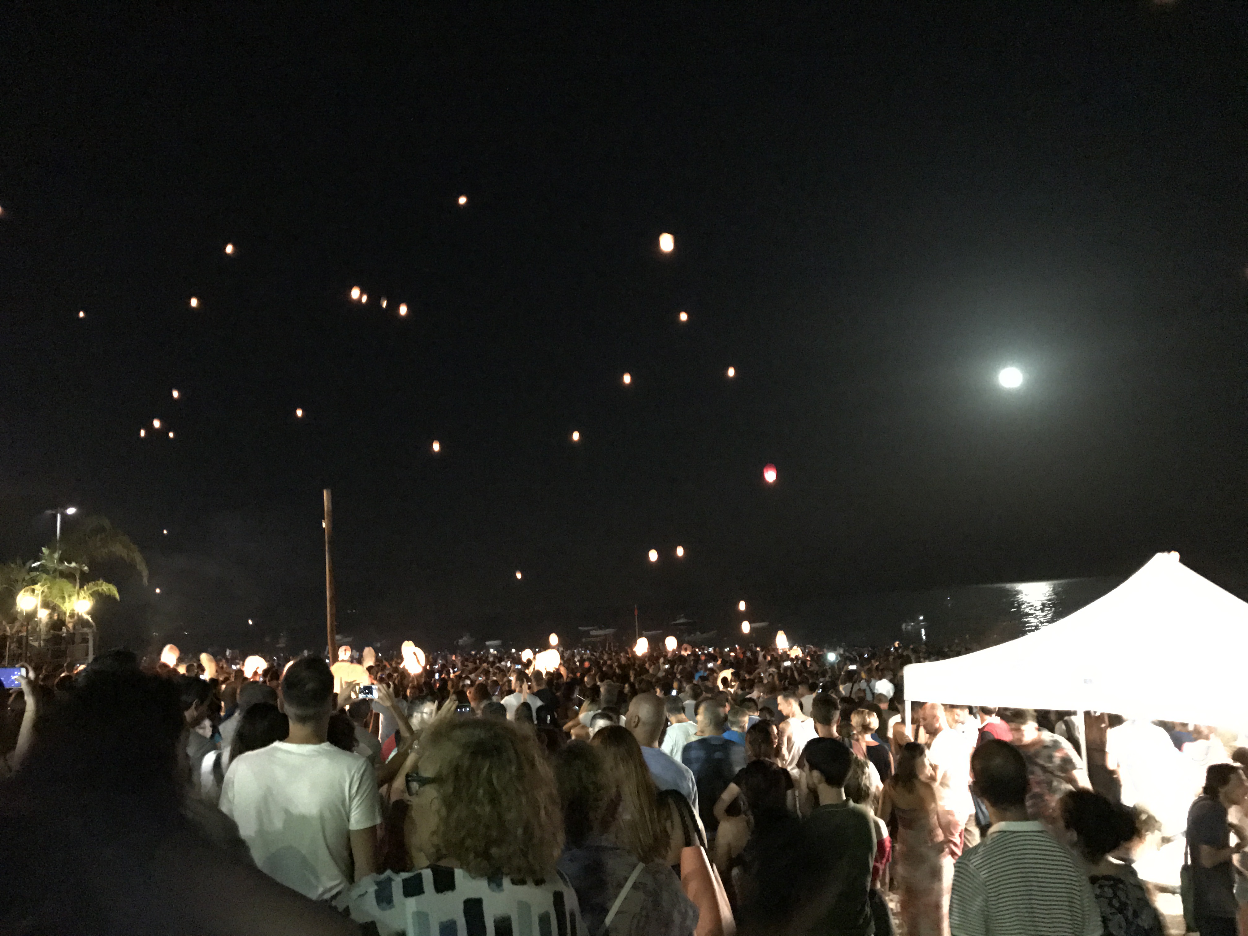 Anche Letojanni ha partecipato a questo rituale infatti per la notte di San Lorenzo, il 10 agosto, è stato organizzato il “Festival delle Lanterne”. L’organizzazione si ripropone di organizzare questo evento ogni anno per la notte di San Lorenzo, quella notte durante la quale in teoria si dovrebbero osservare le stelle cercando di coglierne qualcuna cadente per esprime un desiderio. Quella notte sì e no si vedevano in cielo tre stelle, troppa luce e tutte le persone che si sforzavano per “ballare” in spiaggia musica improponibile.