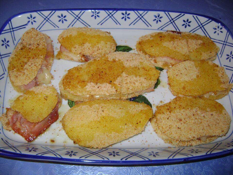 – Sulla parte non panata poggiare una fetta di speck ed una di asiago