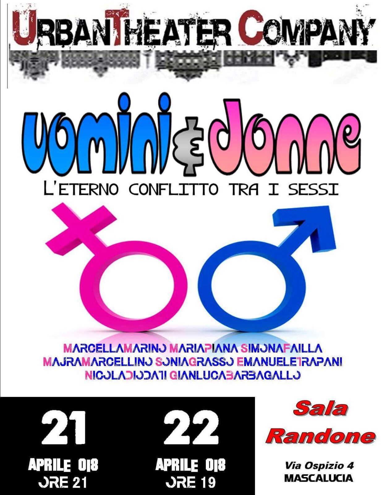 Torna in scena la Urban Company in questo week-end alla Sala Randone di Mascalucia. La nuova proposta artistica della giovane compagine etnea è un testo che affronta un argomento scottante ed a tutti abbastanza caro, i rapporti tra “Uomini e Donne”. Il testo scritto dallo stesso Barbagallo, vede in scena anche Nicola Diodati, Marcella Marino,Maria Piana,Emanuele Trapani,Sonia Failla,Majra Marcellino,Sonia Grasso.