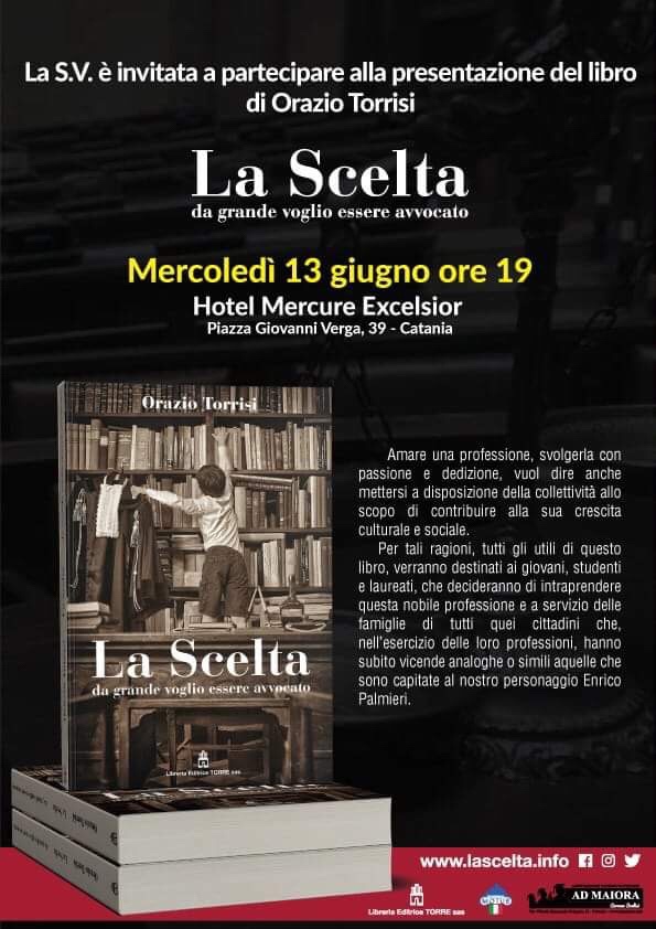 Giorno 13 giugno ore 19 presso l’Hotel Mercure Excelsior – Piazza Giovanni Verga, 39 – Catania, l’Avvocato Orazio Torrisi presenterà il suo libro “La scelta, voglio essere avvocato”. L’invito è aperto a tutti.