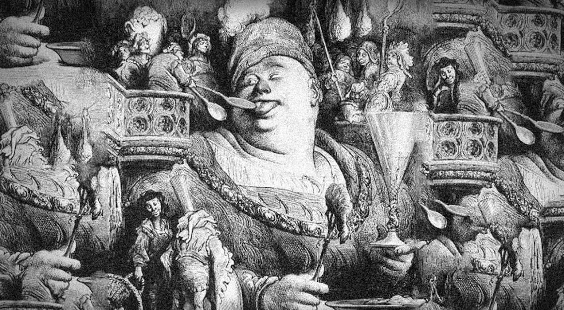 Il solo ed unico obbiettivo? La sazietà e l’ingordigia, che nasconde in sé altri peccati come quello dell’avarizia, della superbia, dell’egoismo, ossessionati come sono dal cibo e dalla buona tavola.