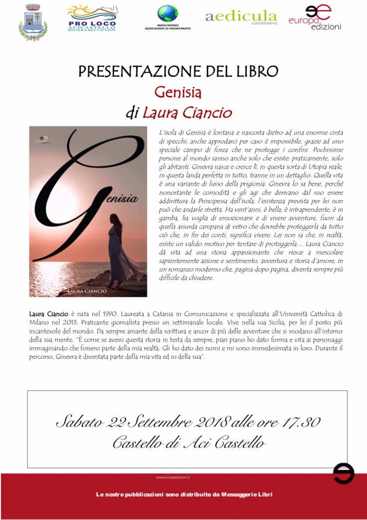 Si è tenuta lo scorso sabato pomeriggio, 22 settembre, presso il Castello normanno di Aci Castello la presentazione del romanzo “Genisia” dell’autrice Laura Ciancio.