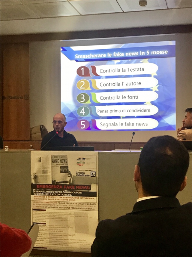 Tra i relatori a portare la propria esperienza professionale anche Fabio Badalà, del dipartimento regionale siciliano per la protezione civile, Orazio Vecchio, addetto stampa dell’azienda ospedaliera per l’emergenza “Cannizzaro” di Catania, Giorgio Romeo, direttore del “Sicilian Post” e Diego Saitta rappresentante del Team LioTrue l’app catanese contro le “Fake News” che è stata premiata al Web Marketing Festival 2018 di Rimini.