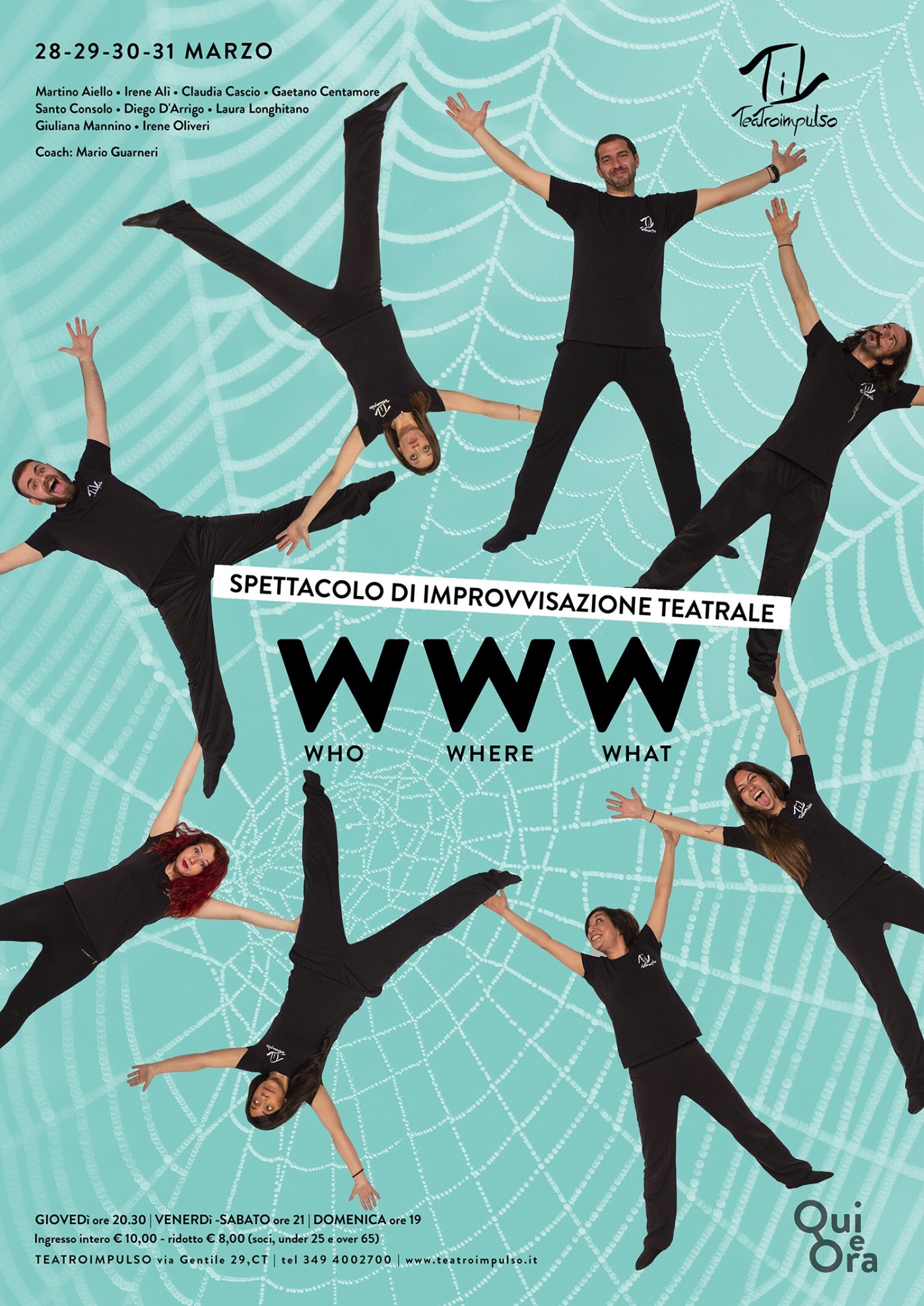 La prossima proposta di Teatroimpulso è lo spettacolo di improvvisazione teatrale che da circa quindici anni ne rappresenta il marchio e lo caratterizza. Lo spettacolo “Who Where What” andrà in scena al teatro Teatroimpulso in via Giovanni Gentile, 29 a Catania, dal 28 al 31 marzo, il giovedì alle ore 20:30, il venerdì e sabato alle 21:00 e la domenica alle 19:00.