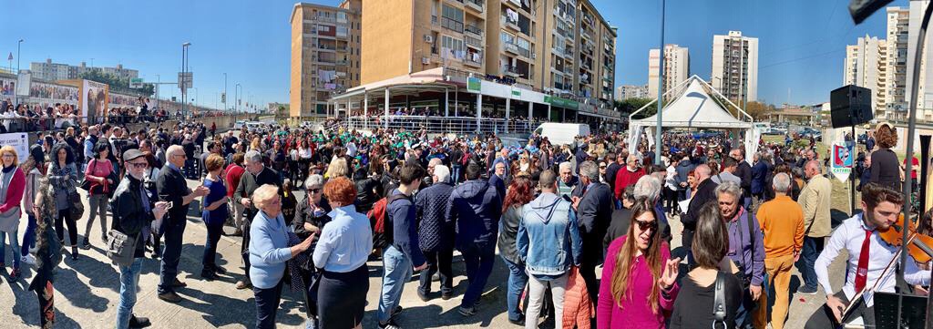 Le percussioni di Michele La Paglia sembrano scuotere le coscienze, tra il silenzio delle pause che ritmano gli interventi istituzionali: «Proprio oggi si celebra l’Annunciazione – spiega l’Arcivescovo dell’Arcidiocesi di Catania Mons. Salvatore Gristina – e nella solennità di questa giornata il ringraziamento va ai tantissimi sacerdoti e diaconi che operano in questo quartiere e alle tante persone che collaborano con loro: mi fa piacere che padre Salvo e padre Fabio abbiamo messo la loro faccia per lanciare un segnale importante e per diffondere la parola del Signore tra queste strade. Grazie a Presti per avere fatto riecheggiare la preghiera di San Francesco: dobbiamo lavorare tutti insieme per il bene delle nostre comunità». «Quest’iniziativa diventa una vera e propria cerniera tra la periferia e il centro – ha detto il presidente degli Architetti Alessandro Amaro – la presenza dell’Ordine oggi testimonia la vicinanza e il sostegno all’opera di Presti, in un territorio che necessita di essere riqualificato attraverso il contributo di tutti».