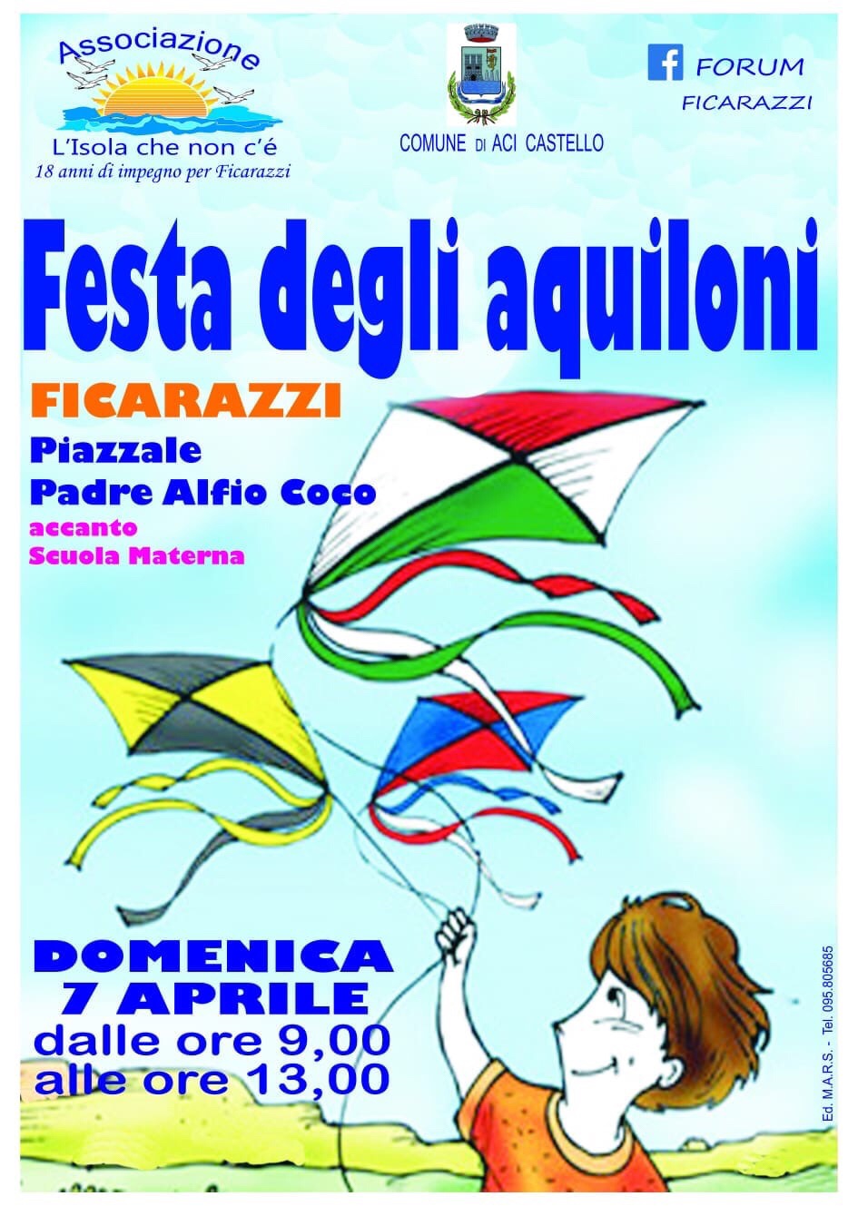 Domani domenica 7 aprile dalle 9.00 alle 13.00 Ficarazzi sarà come ogni anno protagonista della Festa degli Aquiloni. L’evento si terrà presso il piazzale Padre Alfio Coco (accanto la scuola materna).