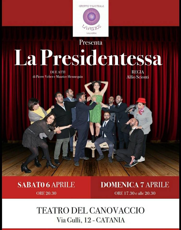 Presso il salone della villa Cosentino, messo a disposizione dal comune di Valverde e dalla Pro Loco, il gruppo teatrale La Fenice ha presentato la commedia brillante “la presidentessa” due atti di Pierre veber e Maurice Hennequin, con la regia di Alfio Scionti hanno recitato: Annalisa Marino (Odette), Giuseppe Piterà (Baglieri), Francesco Giustolisi (Mangiagalli), Giovanna Privitera (Elisa), Ciccio Freni (Davide), Bruno Licitra (Valentini), Rosario Benvenuto (Pizzone), Giovanni Scuderi (usciere), Cristina Emmi (Angekica), Liliana Torresi (Bonafè), Marco Strano (presidente).