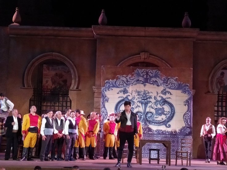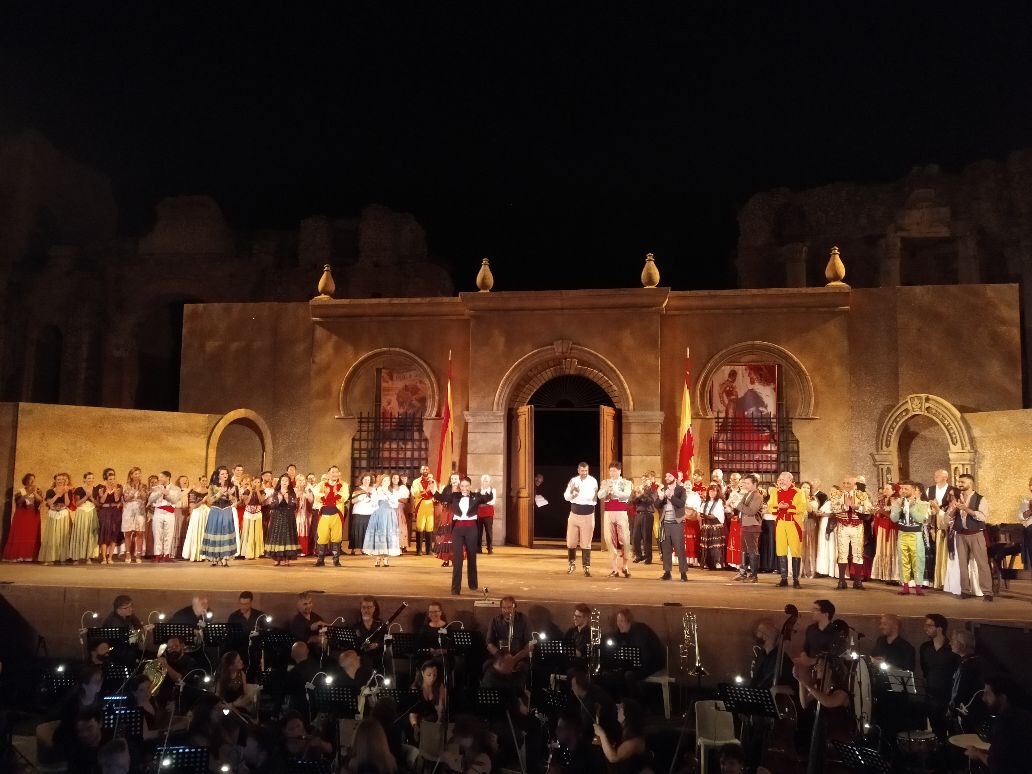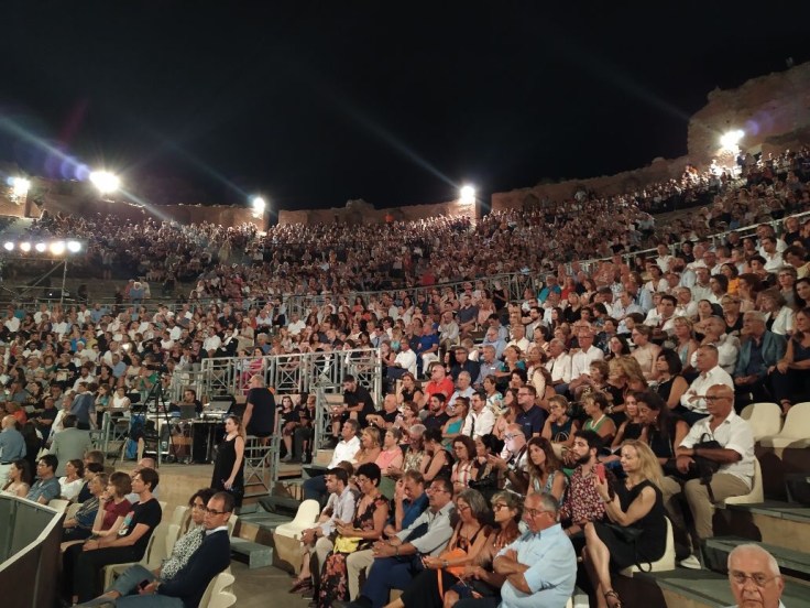 Taormina – Ovazione ai protagonisti di “Carmen” messa in scena dal Taormina opera stars al Teatro Antico. Il festival, giunto alla sua quinta edizione, si è confermato, con questa produzione, alla quale hanno preso parte migliaia di spettatori, l’unico appuntamento di musica classica internazionale del periodo di agosto della cavea taorminese. “Sold out” annunciato e confermato, dunque, per una serata che ha lasciato tutti con la voglia di tornare al Teatro Antico per assistere a spettacoli di tale livello. Non poteva essere altrimenti visto che in scena si è fatto quasi il giro del mondo. “Gli artisti – ha tenuto a sottolineare il direttore artistico, Davide Dellisanti – provengono: da Cina, Giappone, Serbia ed Italia”. Una selezione importante,dunque, che ha portato nel palcoscenico siciliano il meglio del panorama artistico internazionale che ha convinto il pubblico assiepato fino alla fine del capolavoro di Geoge Bizet nella splendida area storica. Interessante anche la scelta di accompagnare la rappresentazione, in francese, con “sovra titoli” in italiano che hanno permesso di seguire, per filo e per segno, un’opera così difficile e lunga.