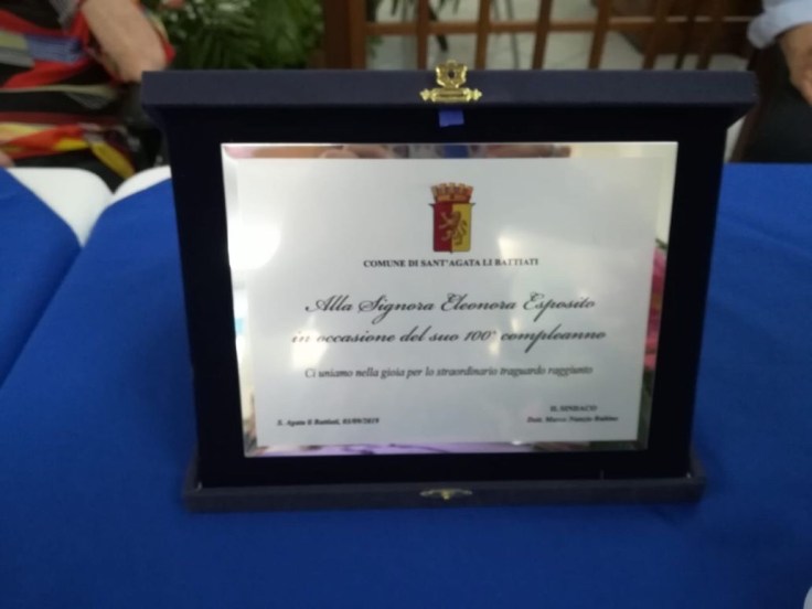Classe ’1919 quindi, questa splendida signora, anche durante la festa organizzata in suo onore, ha dispensato sorrisi a tutti, trasmettendo la forza del suo spirito irrefrenabile. Alla Signora Eleonora anche l’augurio del sindaco di Sant’Agata li Battiati, Marco Rubino, che non ha voluto mancare l’occasione di un compleanno così speciale nel comune che amministra e che ha consegnato una targa ricordo alla festeggiata. Michele Milazzo