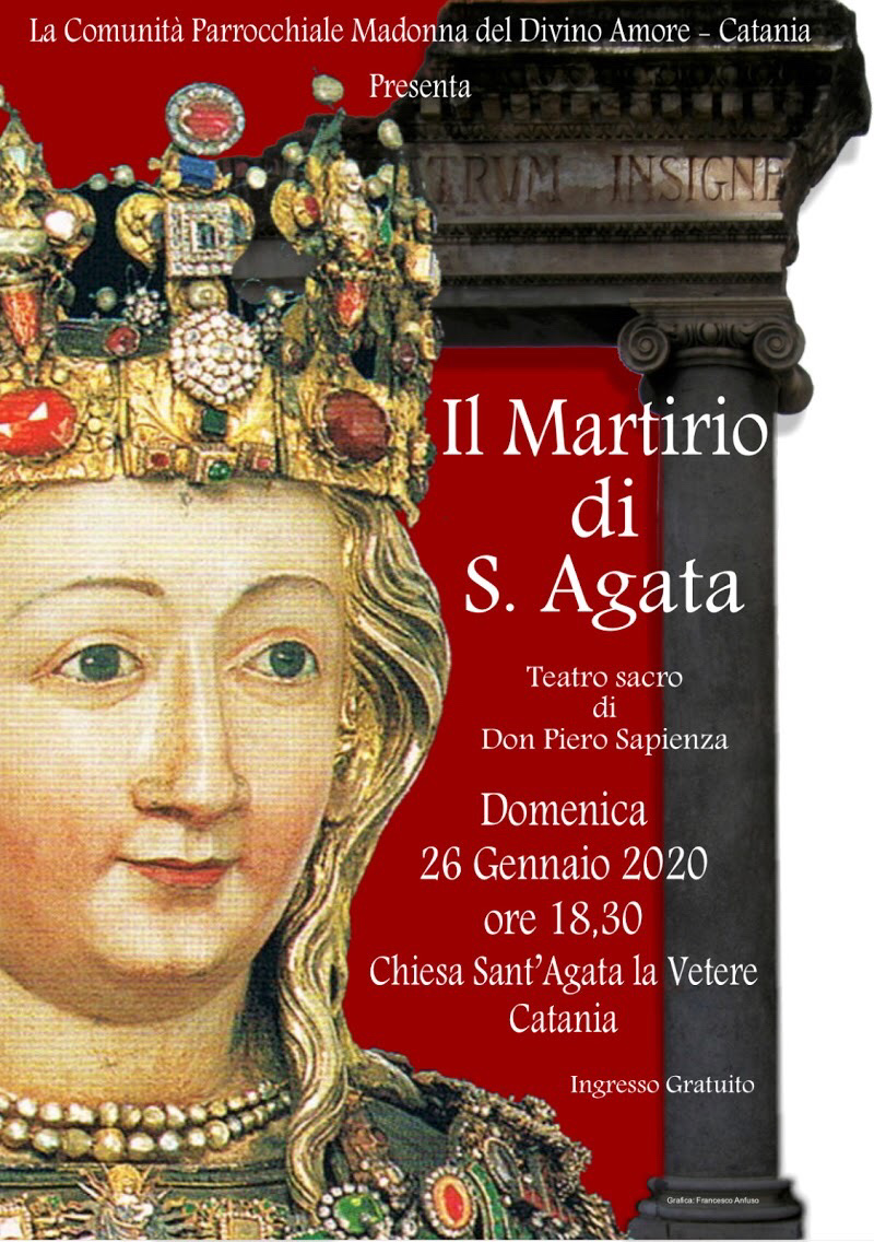 Domenica 26 gennaio alle ore 18,30, nella Chiesa di S. Agata La Vetere di Catania la Comunità parrocchiale Madonna del Divino Amore presenterà la XXXV edizione del dramma sacro di Don Piero Sapienza “Il Martirio di S. Agata”.