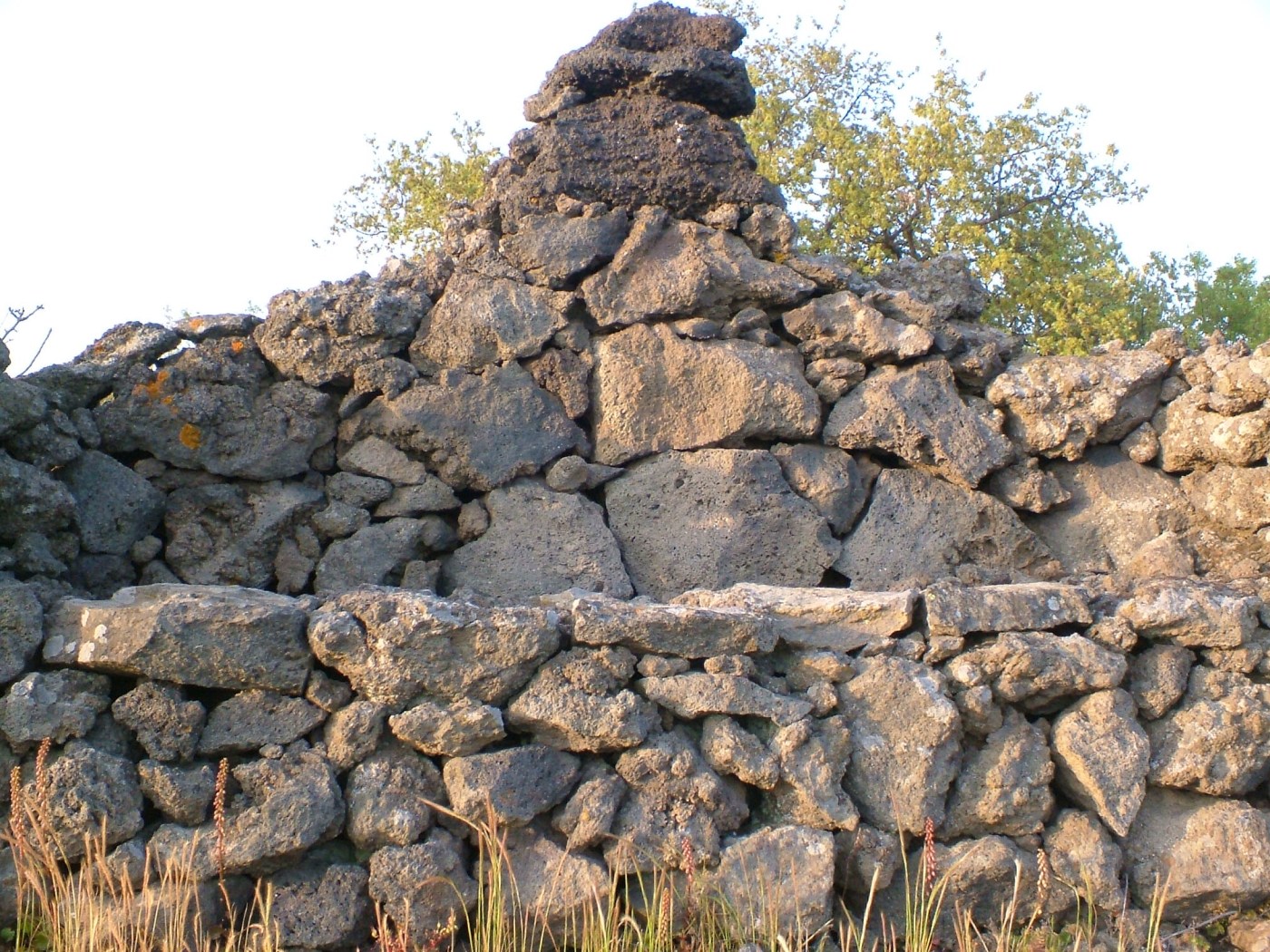 La civiltà contadina dell’Etna, da secoli ha cercato di “rubare” terra alla montagna, e difatti il paesaggio è caratterizzato dalle opere di trasformazione agraria con i terrazzamenti, dove venivano messe delle alte pietre facendo in modo che i tralci delle viti si abbarbicassero lasciando l’uva al sole, le scalette per salire e scendere dai terrazzamenti, le trazzere, i muretti a secco, le “casedde” in pietra, gli ovili, i mucchi di pietre raccolto che hanno creato cumuli squadrati, tutto ciò rappresenta i tipici elementi della civiltà contadina sulle pendici dell’Etna.