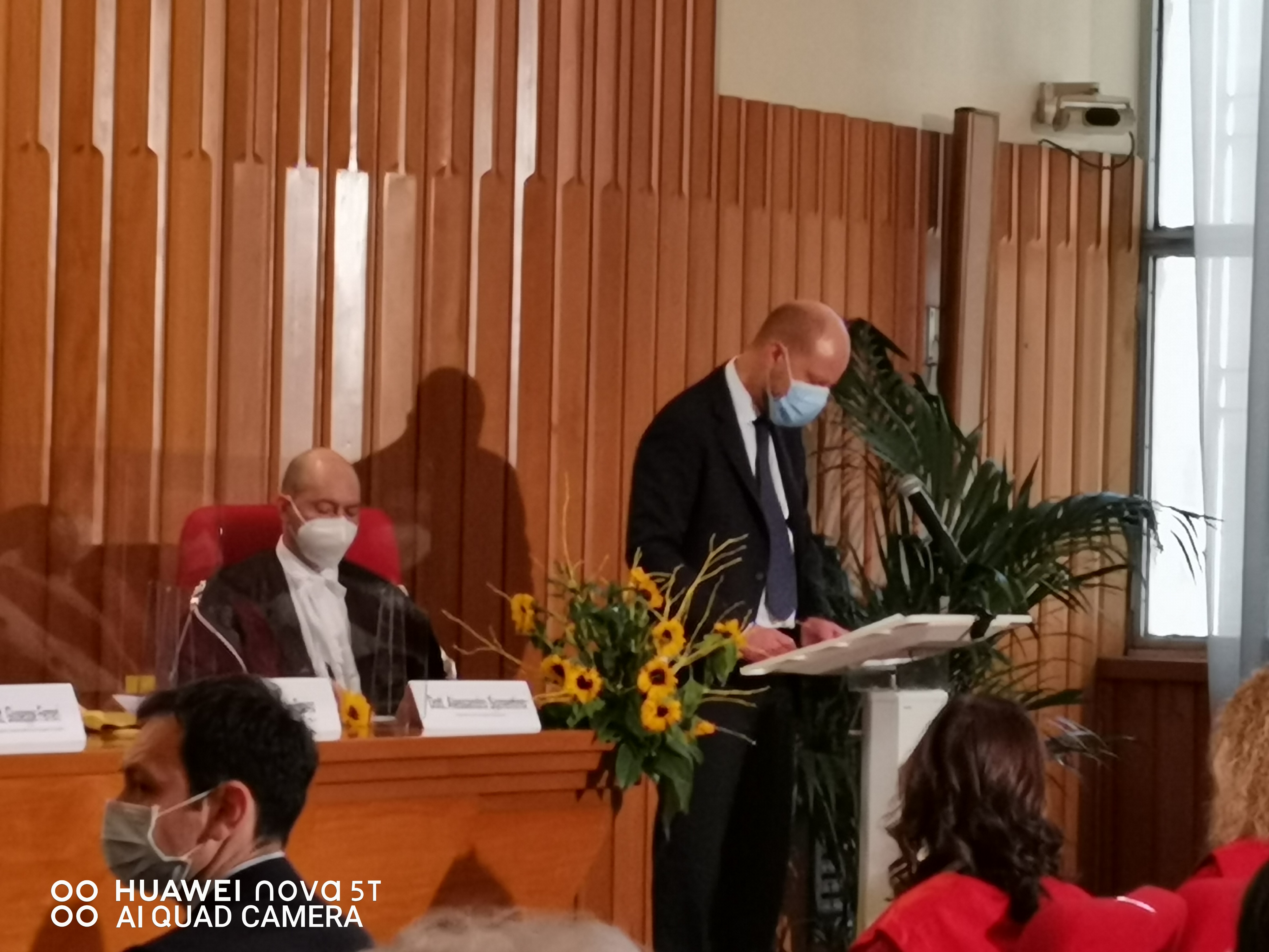 La cerimonia è stata conclusa con l’intervento del Presidente del Consiglio dell’Ordine degli Avvocati, Avv. Rosario Pizzino, ricordando la dolorosa dipartita dei colleghi Fabio Ferlito, Gaetano Bandieramonte e Francesco Finocchiaro, causata dal covid 19 contratto nell’esercizio delle proprie funzioni. Nonostante l’esposizione al contagio, tutt’oggi gli avvocati offrono la loro assistenza affinché possa essere garantita la tutela ai cittadini. L’ammodernamento delle procedure è stata un grande svolta ma devono consolidarsi e perfezionarsi. In tal senso rivolge un invito al rappresentante del Ministro di intervenire fattivamente sulle questioni logistiche e sull’edilizia giudiziaria ormai inadeguata e vetusta, ai limiti dell’agibilità, sulla carenza di organico. Anche se sono previsti degli interventi nel prossimo futuro come la cittadella della giustizia e la digitalizzazione, non si possono più attendere le lungaggini della burocrazia, pertanto l’invito è quello di accelerare i tempi tenendo conto che si è ancora in fase di emergenza.