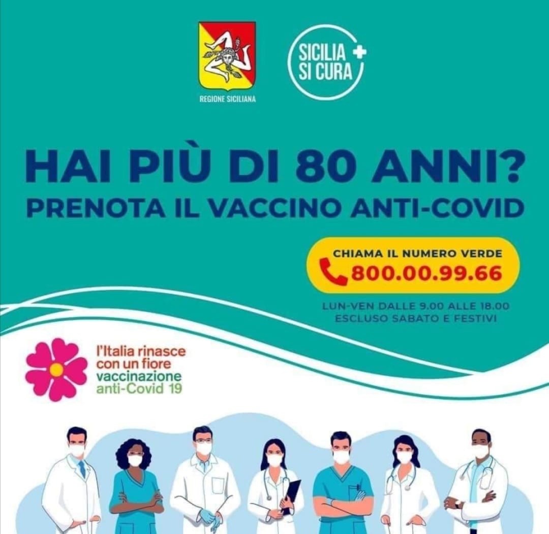 L’Assessore ai Servizi Sociali Antonella Napoli comunica ai cittadini che é attivo il servizio per le prenotazioni del vaccino anti COVID-19, per gli anziani che superano gli 80 anni di età, presso l’ufficio dei servizi sociali a Palazzo Russo (Via Savoia 32) nei giorni di LUNEDÌ, MERCOLEDÌ e VENERDÌ dalle ore 9.30 alle ore 11.30.