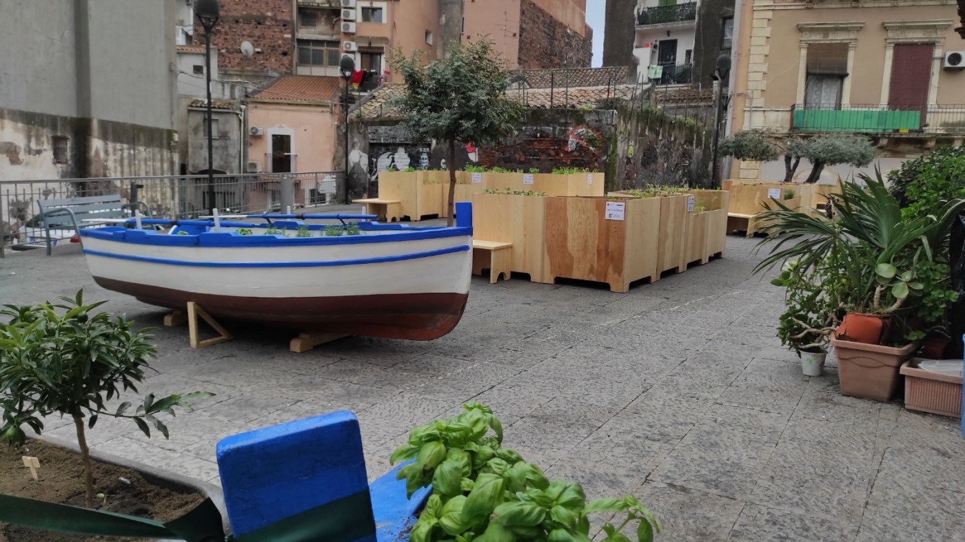Questo piccolo spazio verde è raffigurato da una grande barca da pesca trasformata in una fioriera, con vasi di agrumi ed erbe aromatiche; da grandi cassoni in legno in cui sarà possibile coltivare prodotti ortofrutticoli, biologici e piante.