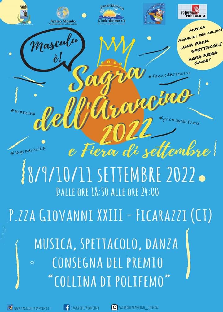 Giorno 8/9/10/11 settembre ritorna Il re di fine estate a Ficarazzi ( Catania ) è “l’arancino”.